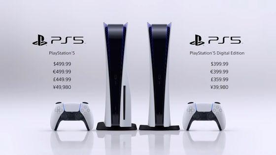 PS5の日本での発売日は2020年11月12日(木)。販売価格は光学ドライブを搭載した通常モデルが4万9980円、光学ドライブなしのデジタルエディションは3万9980円です。発売日&販売価格と共にPS5の詳細なスペックも明らかになっており、本体サイズは通常モデルが幅390mm×高さ104mm×奥行260mm、デジタル・エディションが幅390mm×高さ92mm×奥行260mmです。